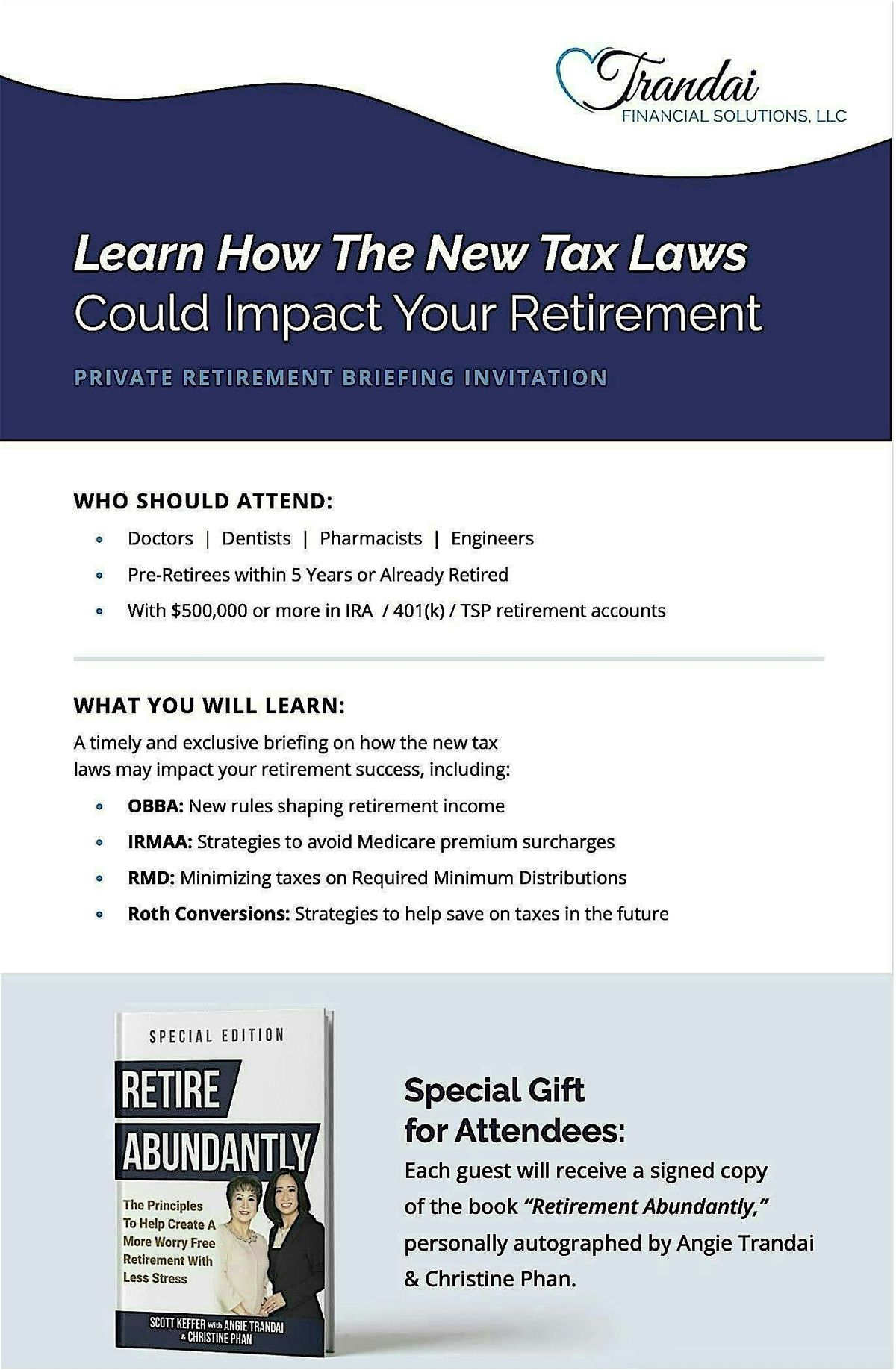 Effects of New Tax Laws on Your Retirement by Angie Trandai, CFP