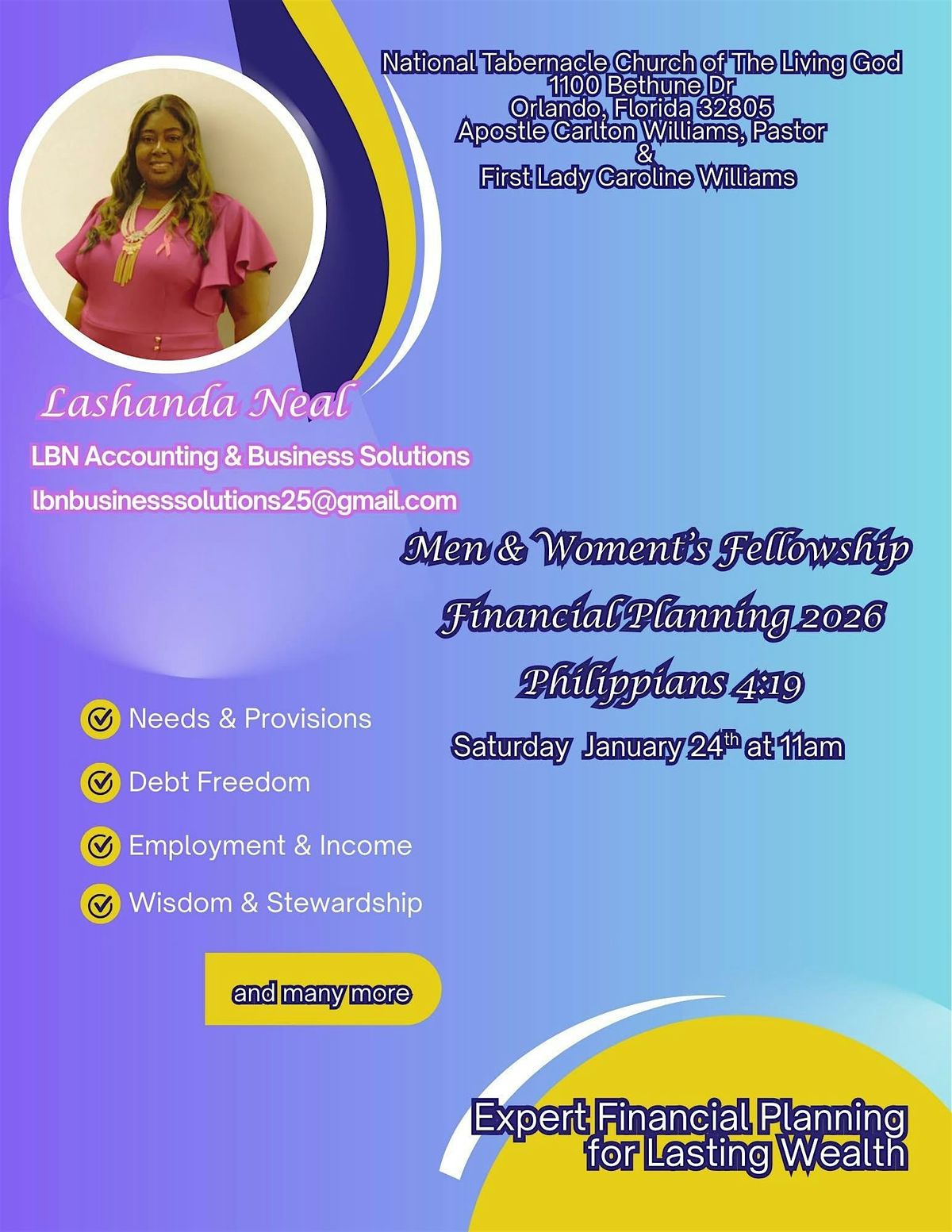 Get ready for an amazing in-person event where we'll dive into the latest tips and tricks to master your financial plans in 2026. Whether you're a newbie or a pro, this is the perfect chance to learn, fellowship, and have fun while planning your financial future. Don’t miss out on this awesome opportunity to boost your financial plans!
