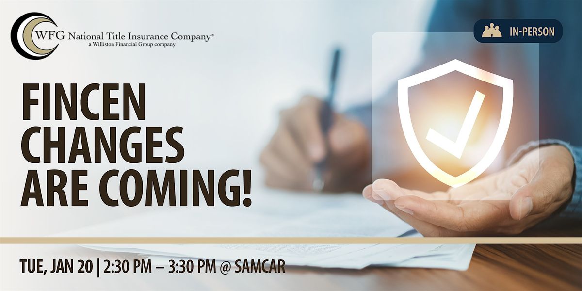 For transactions closing on or after March 1, 2026, the U.S. Treasury's Financial Crimes Enforcement Network (FinCEN) will require expanded anti-money laundering reporting on certain real estate transactions. Learn what you need to be prepared to keep your closings smooth and stress free from Annette Ross with WFG National Title Co. at this one hour in-person presentation, offered as a SAMCAR Professional Development opportunity.