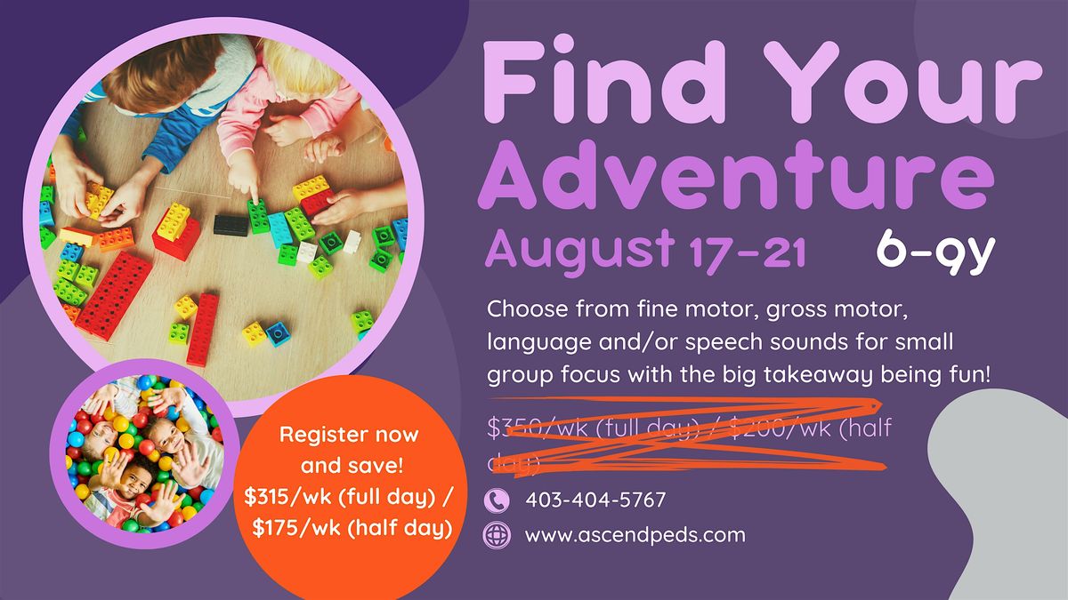 This unique camp provides two small group sessions daily to support development in specific areas your child needs support. Choose from the following options for small groups: fine motor, gross motor, language, and/or speech sounds. During our large group adventure time, we will also incorporate these skills as well as support social skill development in fun and exciting ways. This clinic based camp will be led by an Occupational Therapist and a Speech Language Pathologist collaboratively.