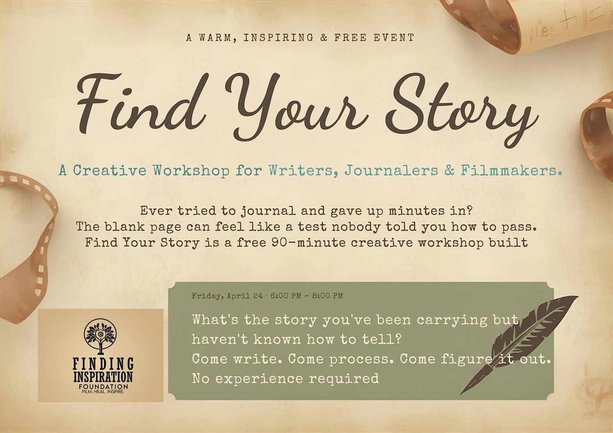 Find Your Story is a free 90-minute creative workshop built around one question: What's the story you've been carrying but haven't known how to tell?