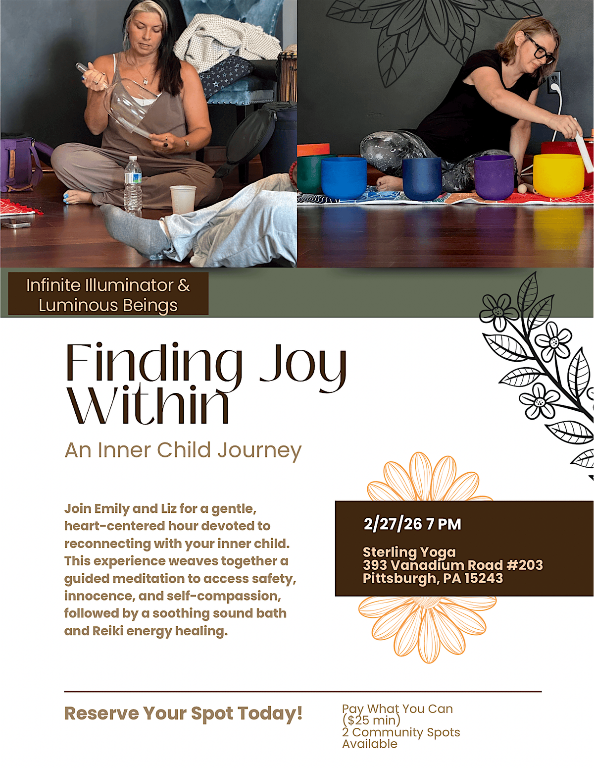 Join us for a gentle, heart-centered hour devoted to reconnecting with your inner child. This experience weaves together a guided meditation to access safety, innocence, and self-compassion, followed by a soothing sound bath and Reiki energy healing. As vibration and intention work together, you’ll be supported in releasing stored tension, softening the nervous system, and remembering the joy, wonder, and wholeness that live within you. No prior experience necessary—just come as you are.