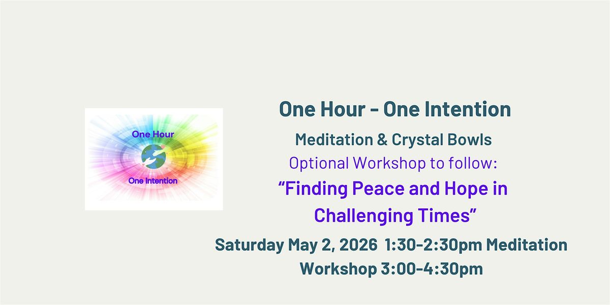One Hour – One Intention is a donation-based community gathering where we hold space for peace, love, and calm. For just one hour, we focus on what's good—being peace, being love, being quiet, being happy—and sending that energy out into the world.