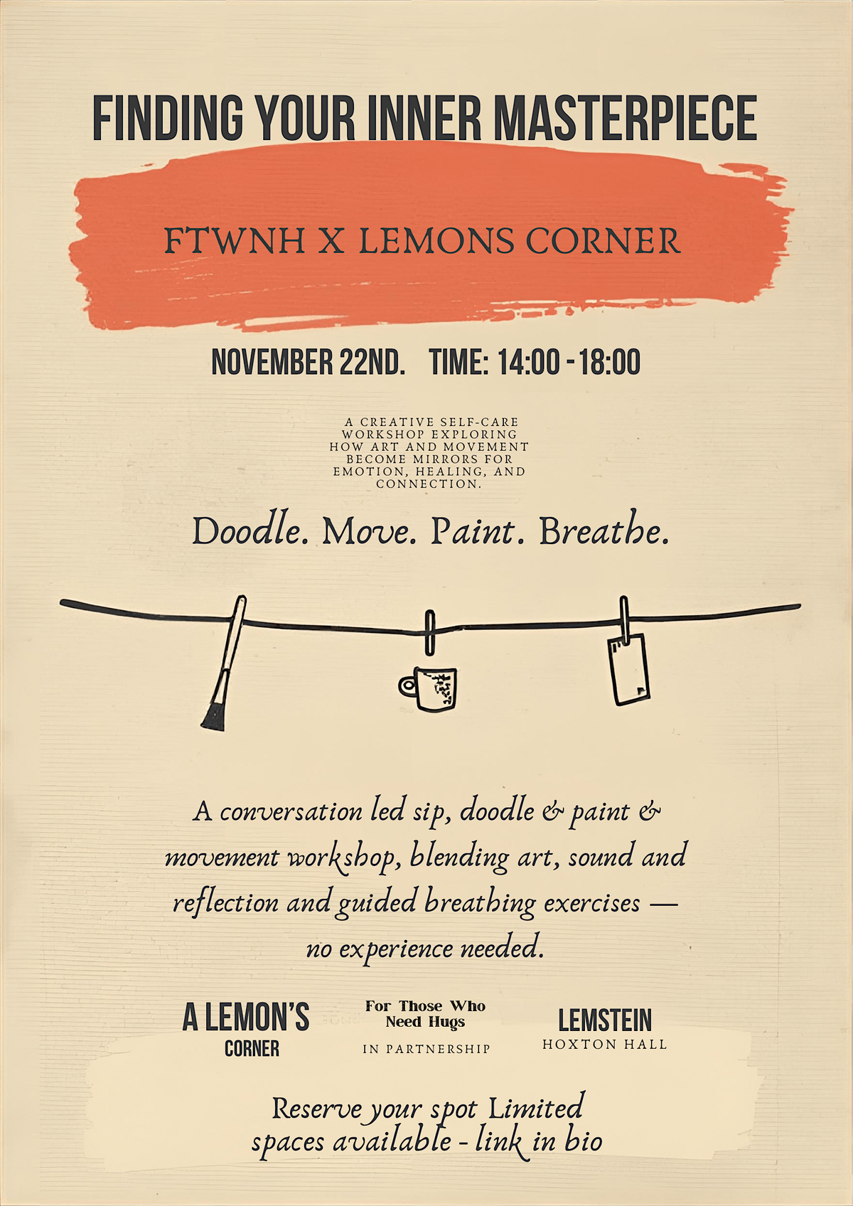 Through doodling, painting, music, and mindful flow, you’ll explore new ways to express yourself, release stress, and reconnect with your inner creativity.