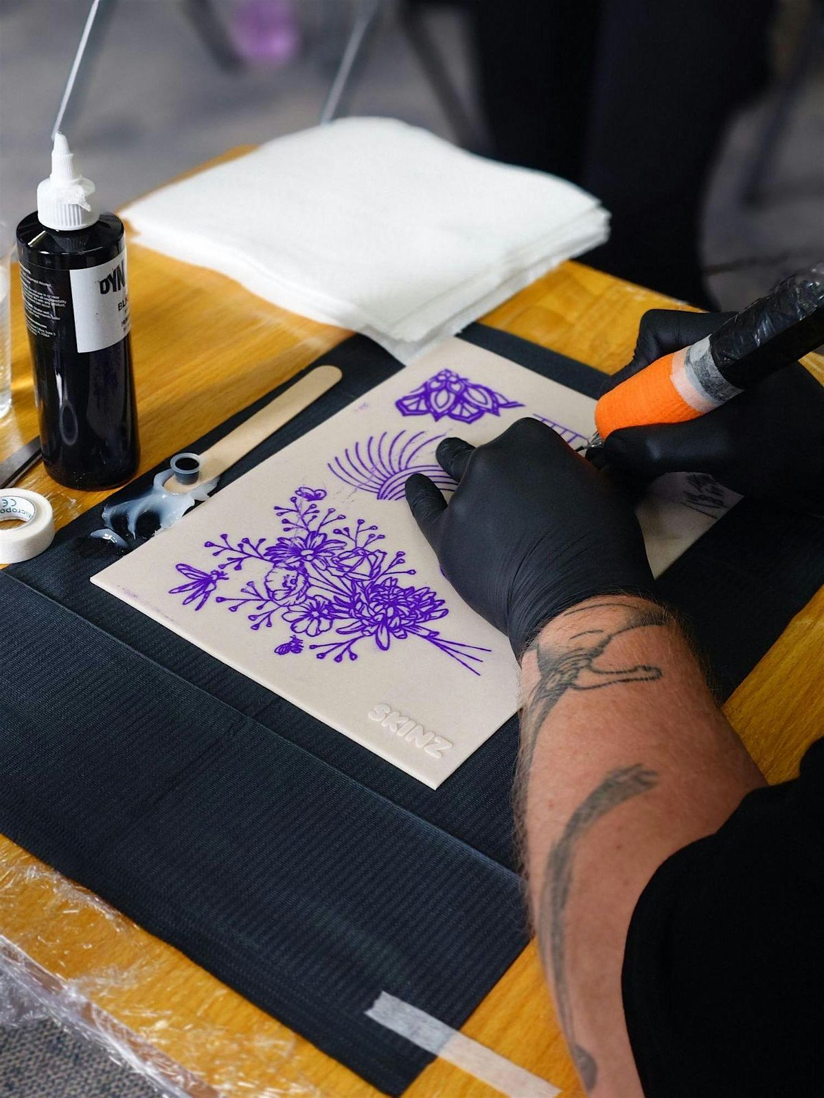 This is a hands on course, you will be tattooing special life like practice skin on the day.