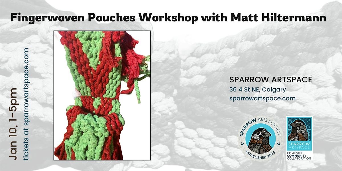 Whether you are a total beginner or just seeking a new weaving project, join us for this workshop! Each participant will create 1 small woven pouch with a button closure. Taught by Métis fingerweaver/sashmaker Matt Hiltermann. No experience needed and all supplies will be provided.