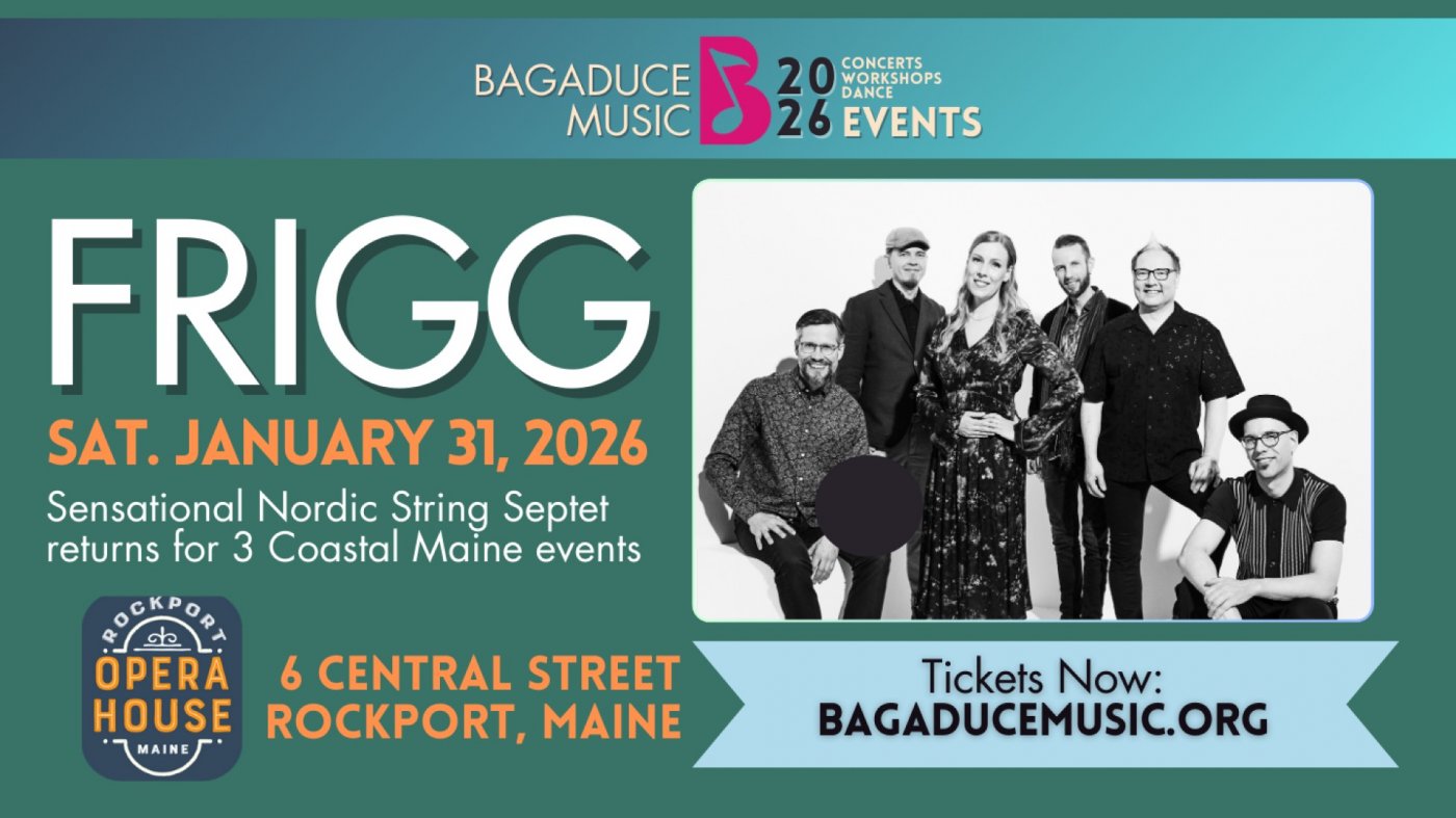 The internationally celebrated Finnish folk ensemble FRIGG launches their Bagaduce Music Residency at the Rockport Opera House on Saturday, January 31, presented by Bagaduce Music. The residency features special collaboration with Maine guitarist Noah Fishman, who joins the band throughout the tour.