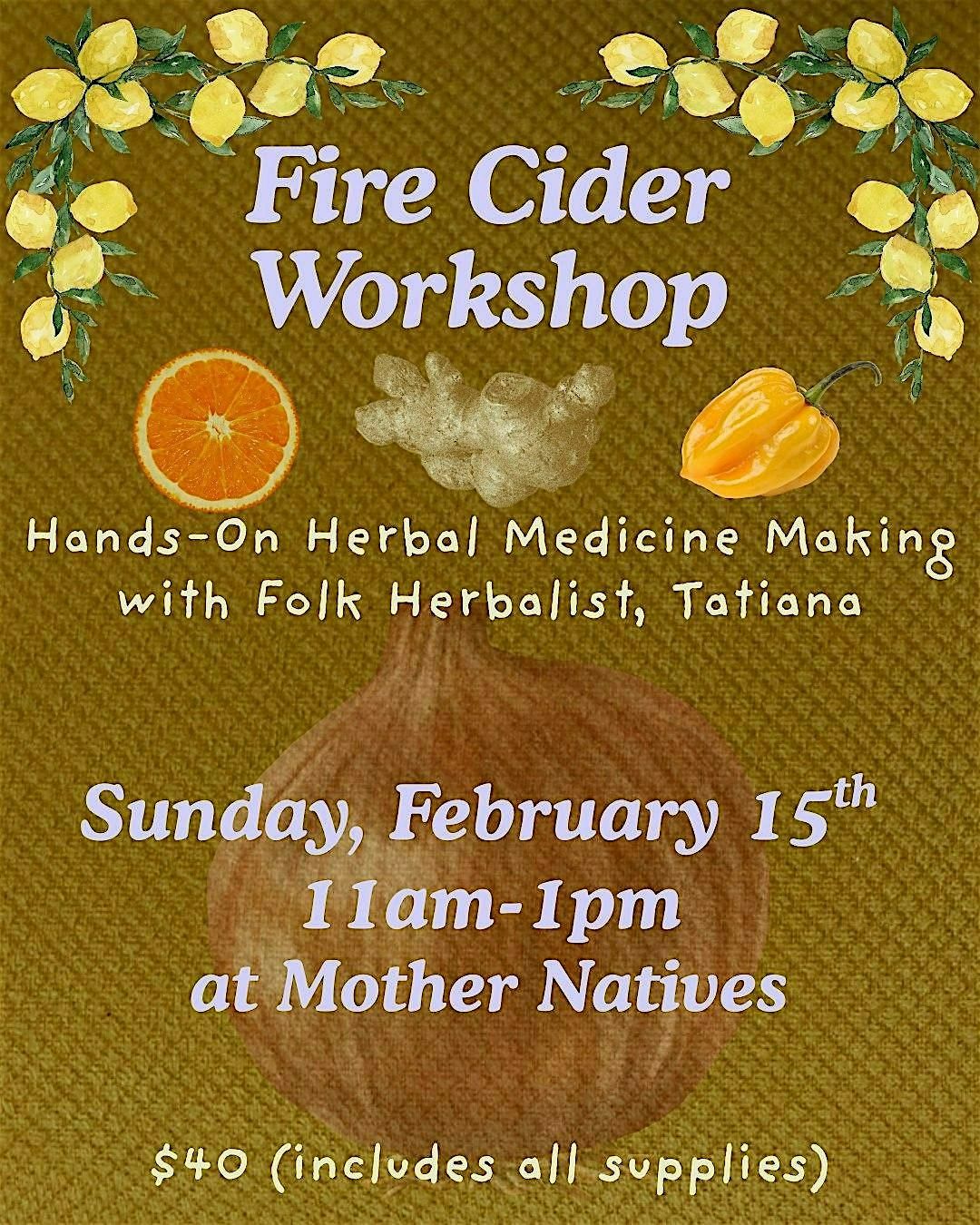 • A sample of pre-made fire cider to take home