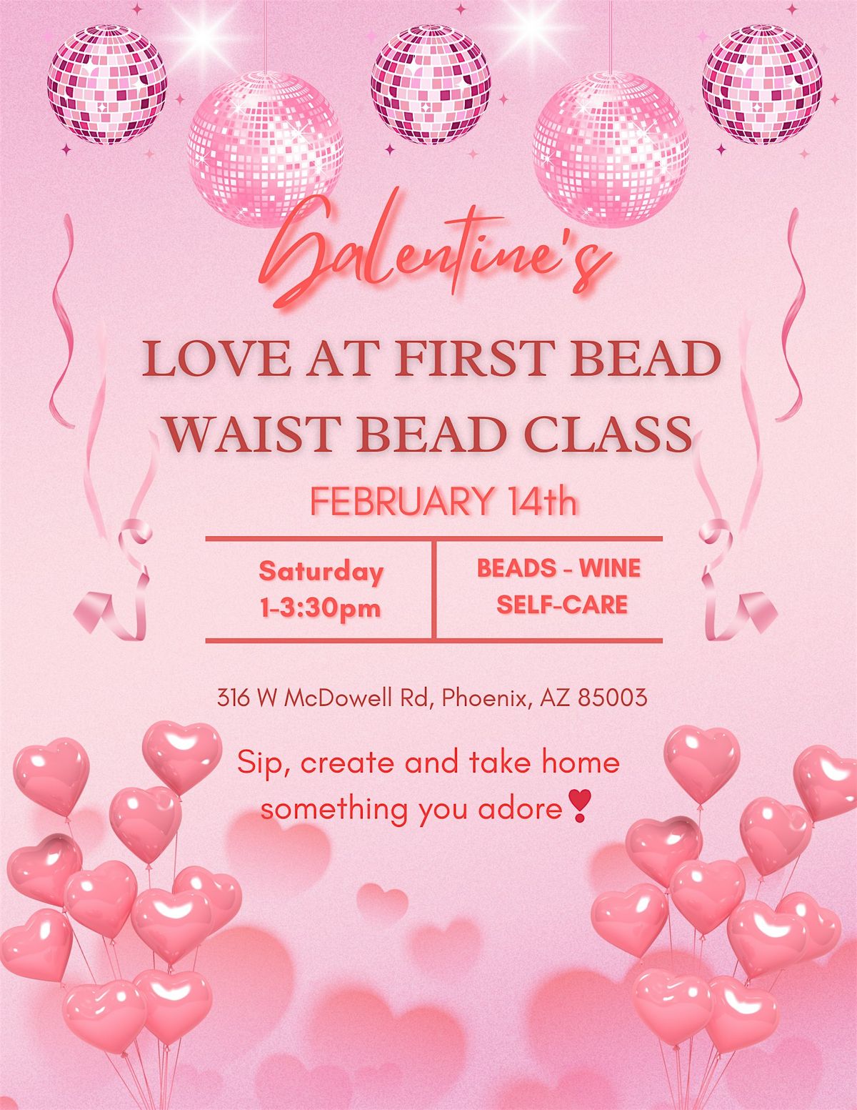 Join us for the second class of the year and create your own waist beads with me Sunshine, as your guide! Sip, create and take home something you adore!