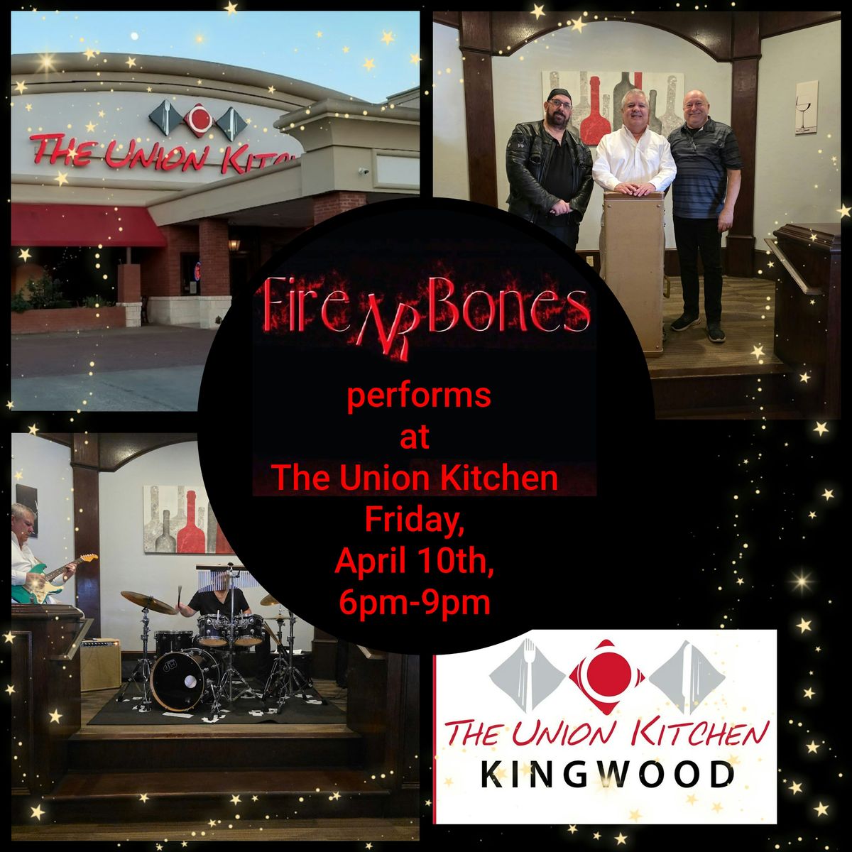 Fire NR Bones, an instrumental jazz and blues trio, performs at The Union Kitchen in Kingwood on Friday, April 10th, 6:00 P.M. to 9:00 P.M.