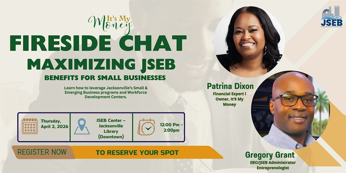 Join us for an engaging and insightful fireside chat with Patrina Dixon, Founder and Owner of It’$ My Money and Gregory Grant of JSEB as we explore the real benefits of one of Jacksonville’s most impactful small business resources.