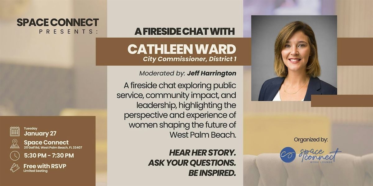 Join us at Space Connect for an engaging fireside chat with West Palm Beach City Commissioner Cathleen Ward (District 1), focused on female leadership, public service, and community impact.