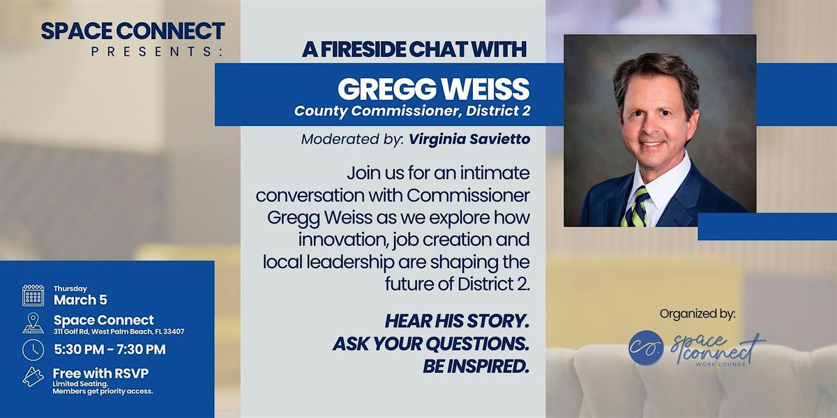 Join us for an intimate conversation with Palm Beach County Commissioner Gregg Weiss, moderated by Virginia Savietto (Palm Beach School District Board Member) as we explore how innovation, responsible growth, and local leadership are shaping the future of District 2.