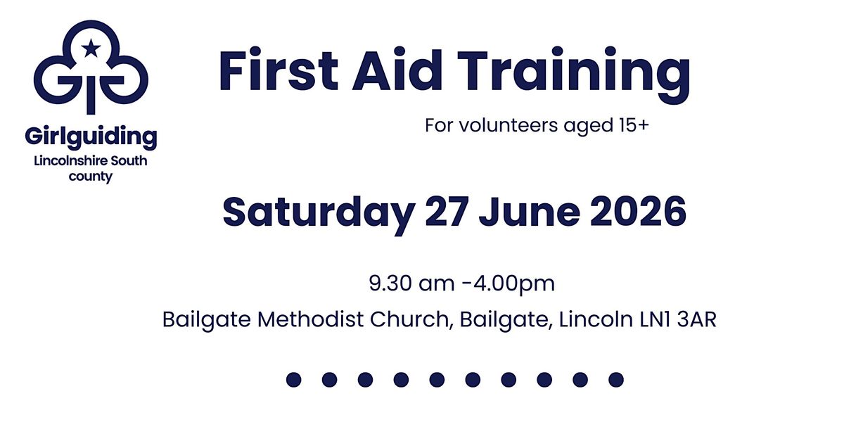 Face to face first aid course for members of Lincolnshire South Girlguiding.£30 to be paid in advance. For volunteers recorded on GO 15+