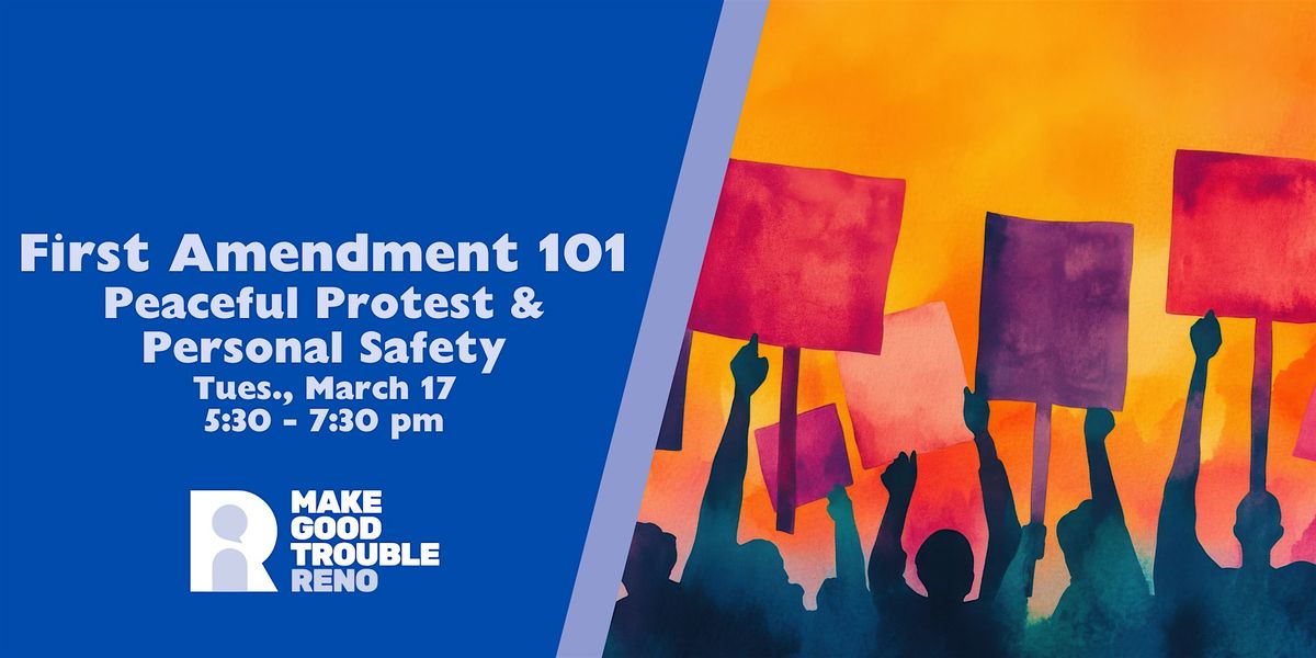 At this Make Good Trouble Reno meeting, we’re focusing on the First Amendment and one of the biggest tools it provides to us: the right to assemble and protest.
