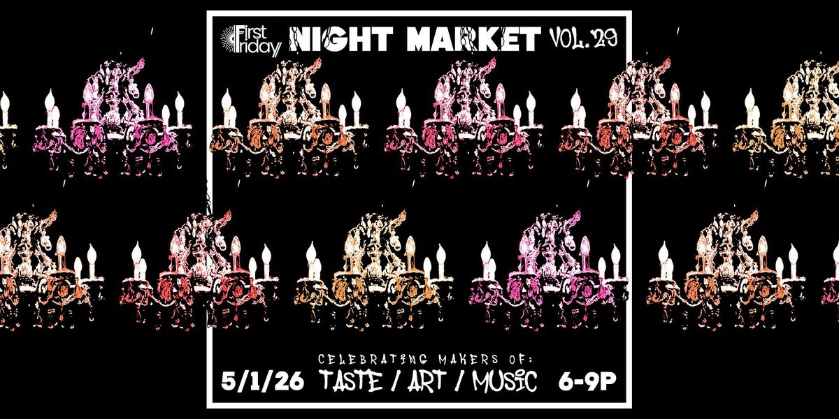 Hit that FREE RSVP above and come join us on Friday, May 1st for Vol. 29 of our First Friday Night Market! You can shop local small businesses featuring baked goods by Just A Pinch Sweet Treats, art from Arthur Rose Neis, Rom Fox, Alienz 'R Us, Harmony Deimling, merch from Glad Racket, and permanent jewelry from Chained By Kellie.