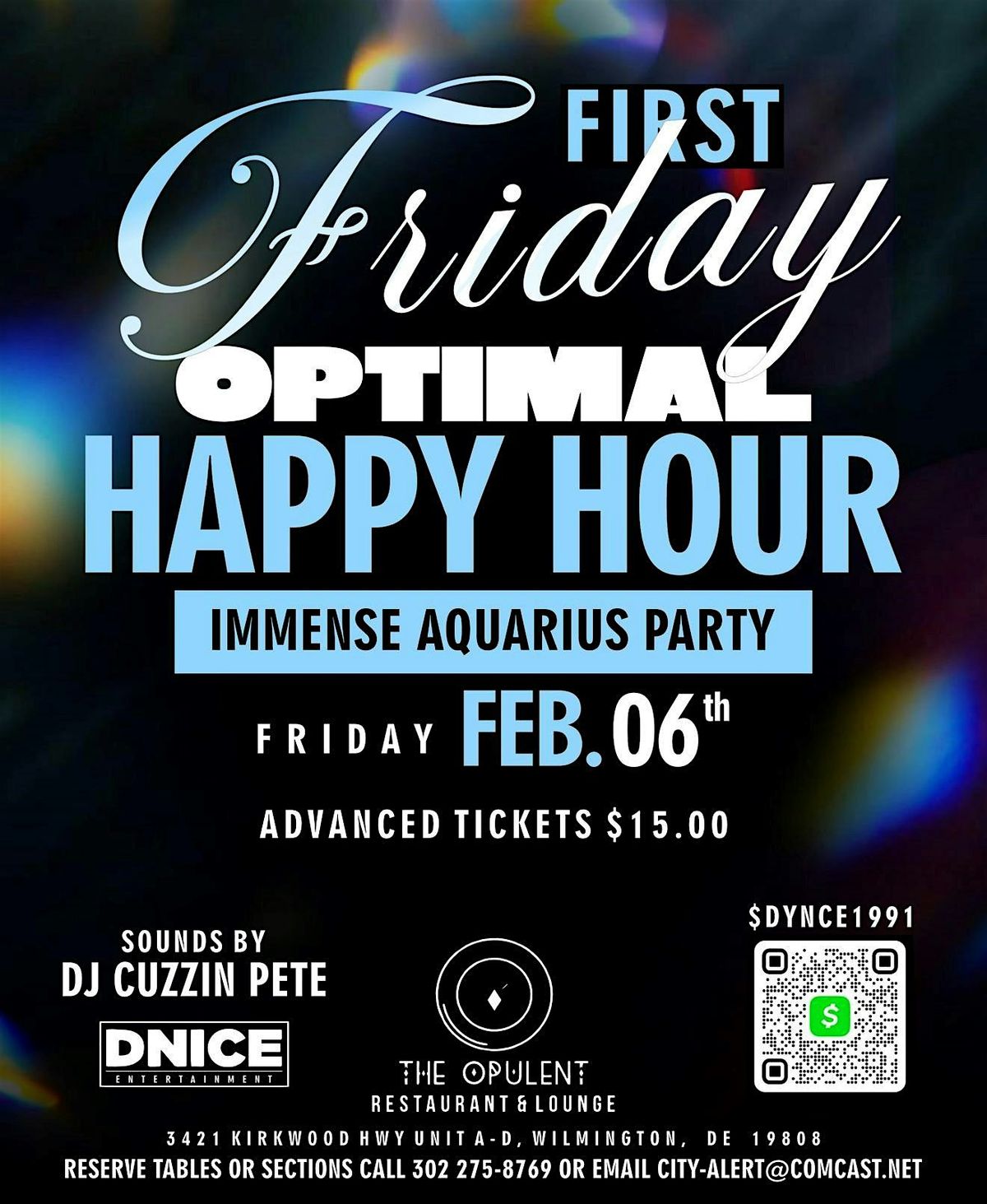 Back By Popular Demand First Friday with Optimal Happy Hour. Also the immense Aquarius Party. Reserve your table Reserve your Section.