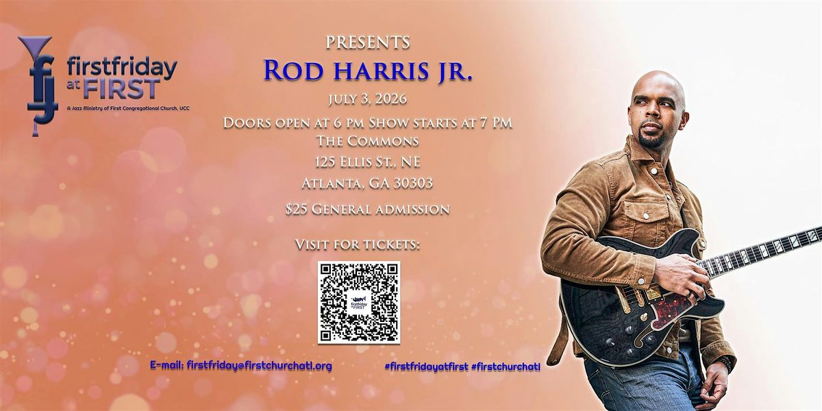 Join us in July when First Friday presents Rod Harris, Jr. --Grammy-nominated jazz guitarist Rod Harris, Jr. has become a dynamic and influential presence in the contemporary jazz world, earning recognition both in the U.S. and abroad. After a decade spent recording, touring, and performing with legendary artists across genres, Harris has emerged as a powerful voice in modern jazz. His 2016 debut album, The Counsel of Elders, pays tribute to jazz guitar icons Wes Montgomery, Grant Green, George Benson, and Kenny Burrell, while his 2018 EP, Exits & Options, blends hip-hop, jazz, and soul into a fresh and innovative sound. That same year, Harris received a Grammy nomination for his guitar work and musical contributions to neo-soul legend Musiq Soulchild’s album Feel the Real. With every performance, Harris bridges the past and present—honoring tradition while carving his own distinct path forward.