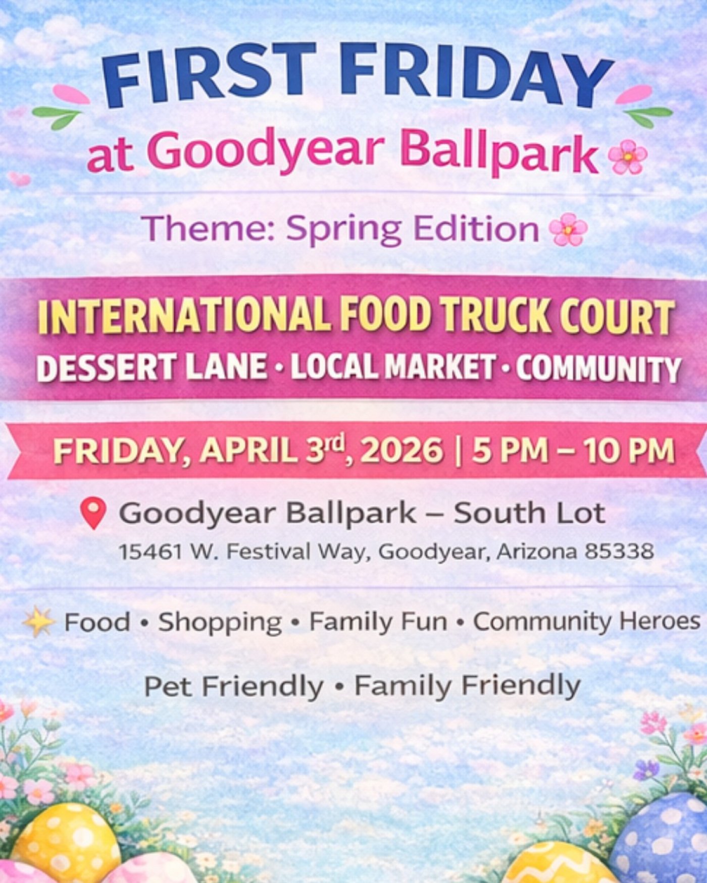 First Friday @ Goodyear Ballpark is the West Valleyβs signature night market β a once-a-month celebration of food, music, culture, and community that brings together thousands from across Arizona.