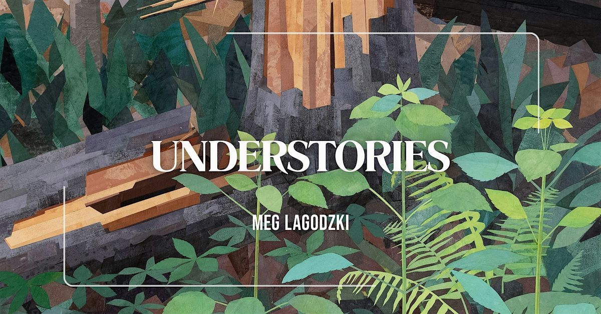 In the Harrison Gallery, Understories by Meg Lagodzki. This body of work comprises small oil paintings and acrylic-painted collages built from layered textures and finely cut paper, inspired by close observation in the woods. Shifting between macro and micro views, the work reflects both the quiet richness of forest details and the lasting effects of storms, climate change, and human impact on natural cycles.