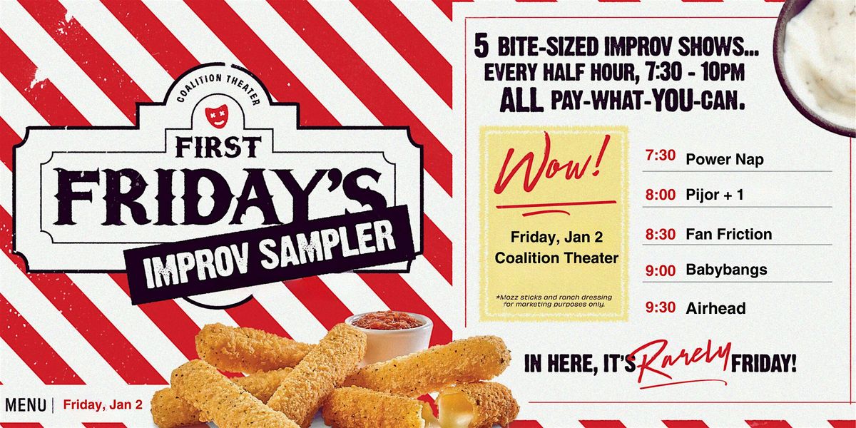 With a new act every half hour, the First Friday Improv Sampler will be sure to delight!