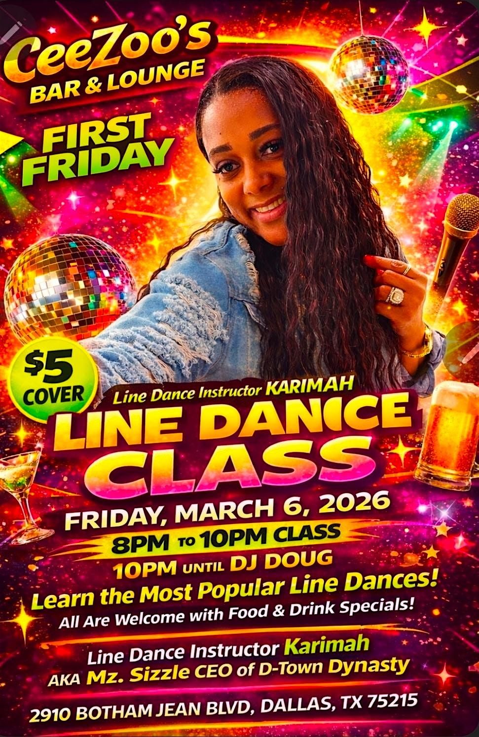 Dust off those boots and get ready to strut your stuff at the First Friday Line Dancing Class and Party - it's going to be a boot-scootin' g