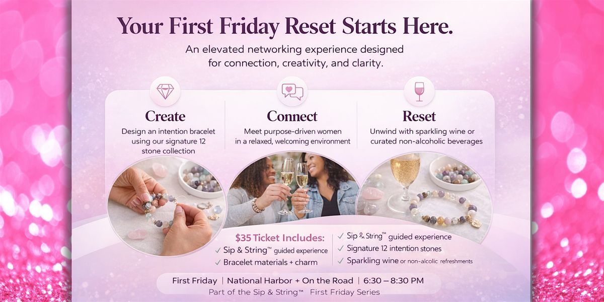 Join us for Sip & String™ First Friday—a creative, feel-good networking experience where women come together to create, connect, and reset.