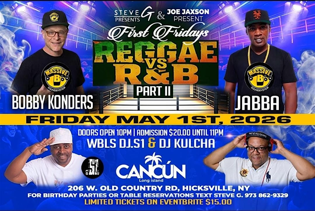 DON'T MISS FIRST FRIDAY REGGAE VS. R&B PART II. FRIDAY MAY 1ST, 2026. DOORS OPEN 9PM TO 5AM