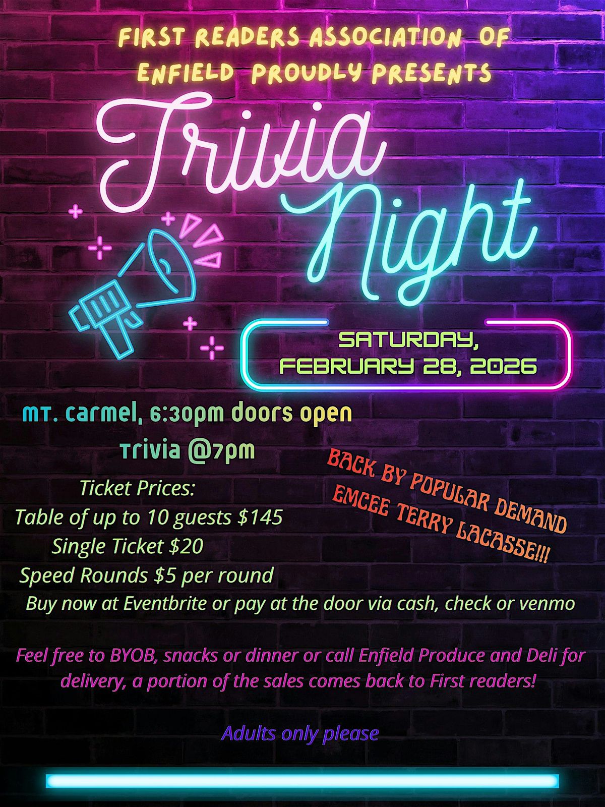 Join Us for the First Readers Association of Enfield CT Annual Trivia Night!