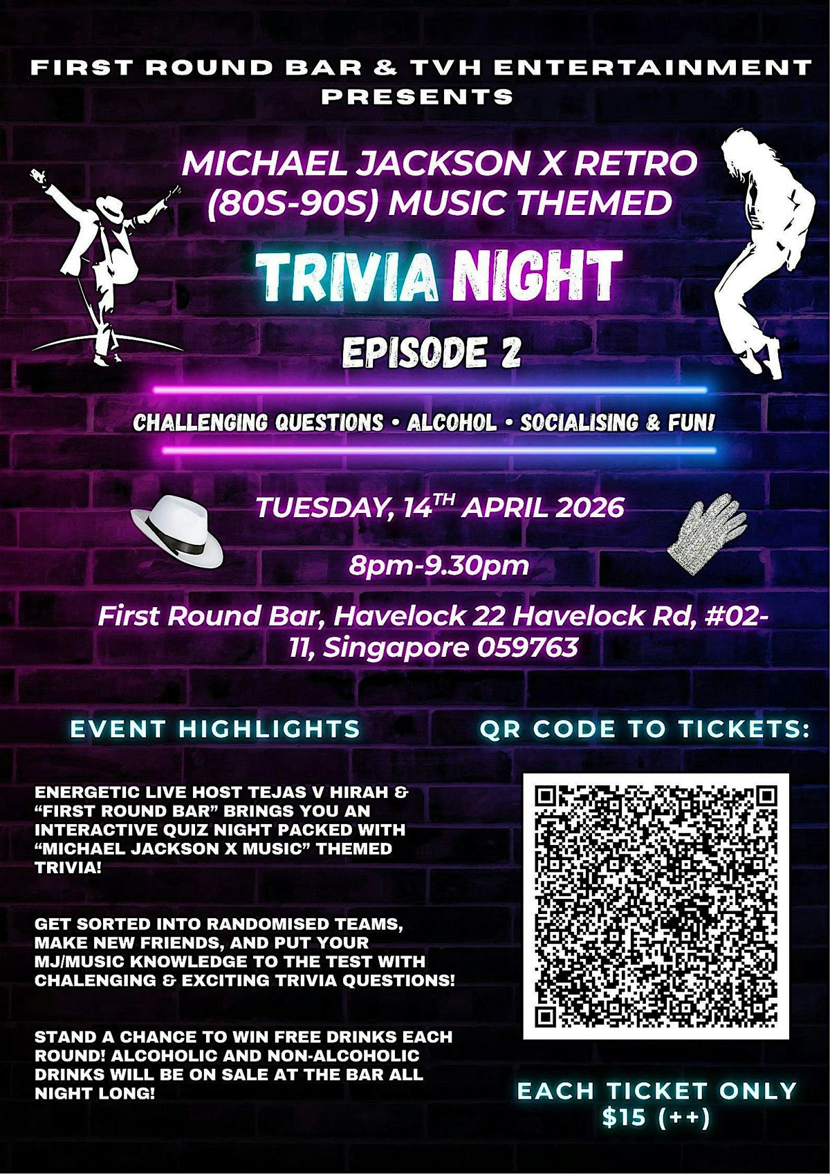 Calling all Michael Jackson and retro (80s-90s) music fans! Get ready for an epic night of trivia fun and tunes! Test your knowledge on Michael Jackson and other retro music legends while vibing with friends and fellow fans. Whether you're a trivia pro or just here for fun, itโs the perfect way to celebrate great music and good times. Donโt miss out on the chance to prove your music mastery and enjoy an unforgettable evening! Plus stand a chance to win free drinks!