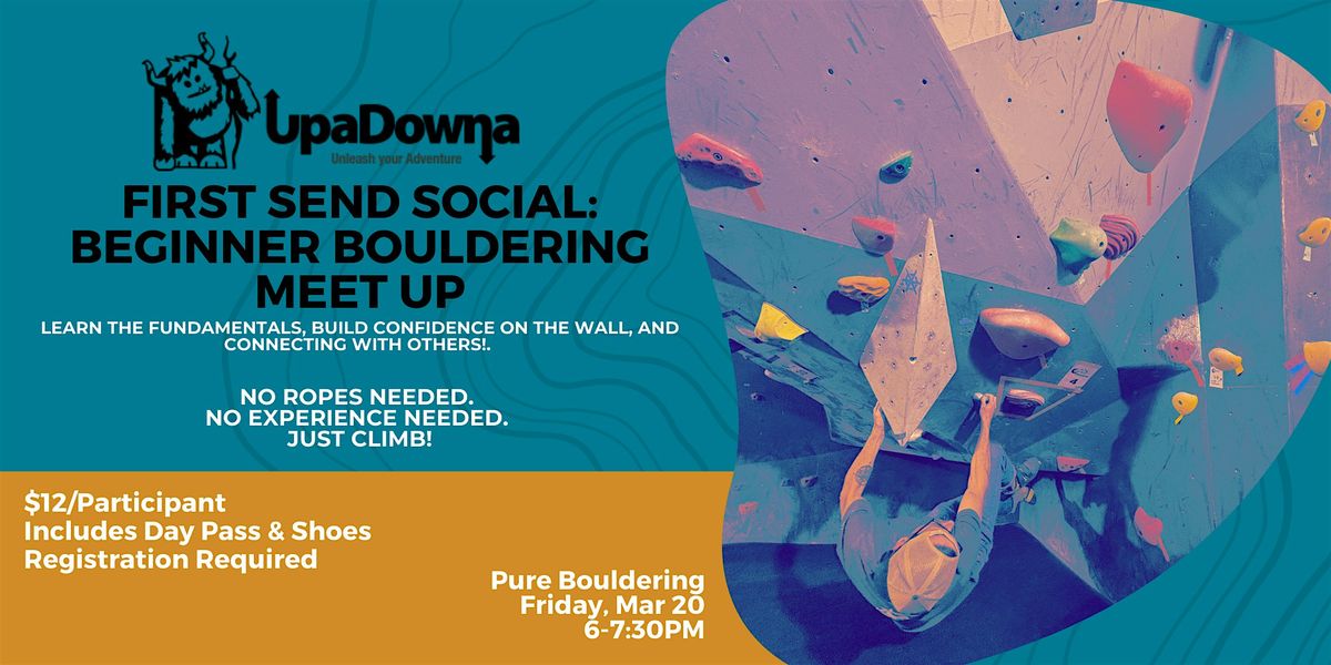 Event Details: Join UpaDowna for First Send Social, a fun and welcoming beginner bouldering meet up at Pure Bouldering! This 90-minute session is designed for adults who are newer to climbing and want to learn the basics in a relaxed, supportive environment. We’ll provide tips for foundational movement and technique —no ropes needed and no experience required. Just show up ready to try something new!