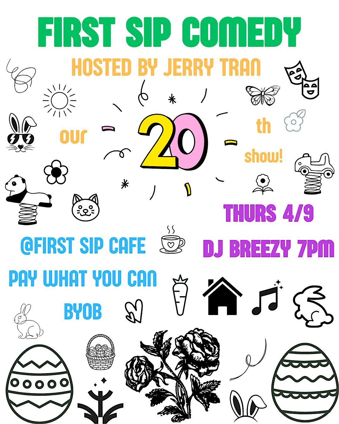 Hi there! I produce and host a stand-up comedy showcase at First Sip Cafe in Uptown that happens roughly every six weeks and has been going on for a little over two years now.