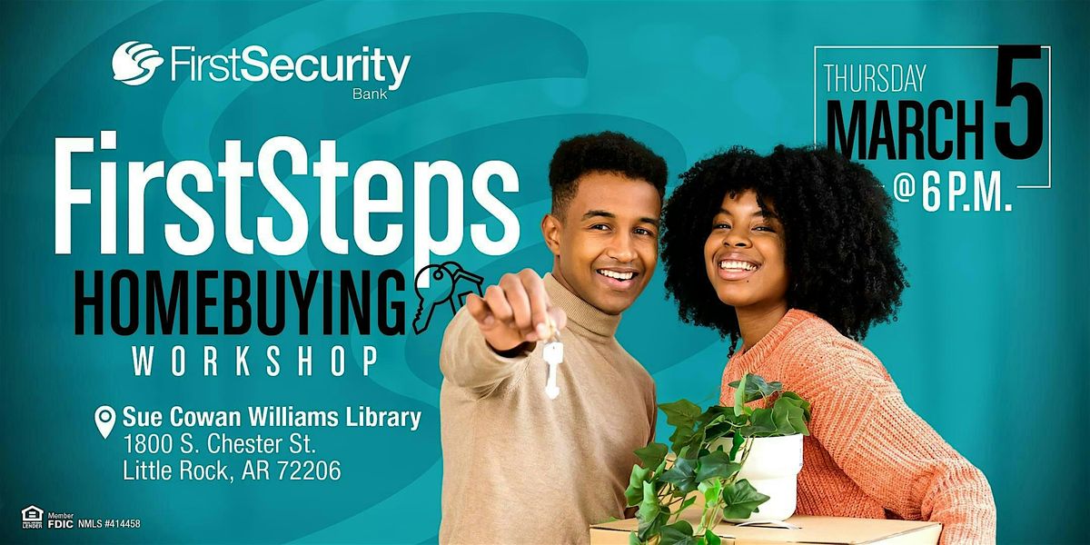 Join us for a FREE First Steps Homebuying Workshop on Thursday, March 5th, at 6:00 p.m. at Sue Cowan Williams Library (1800 S. Chester St, Little Rock, AR 72206).