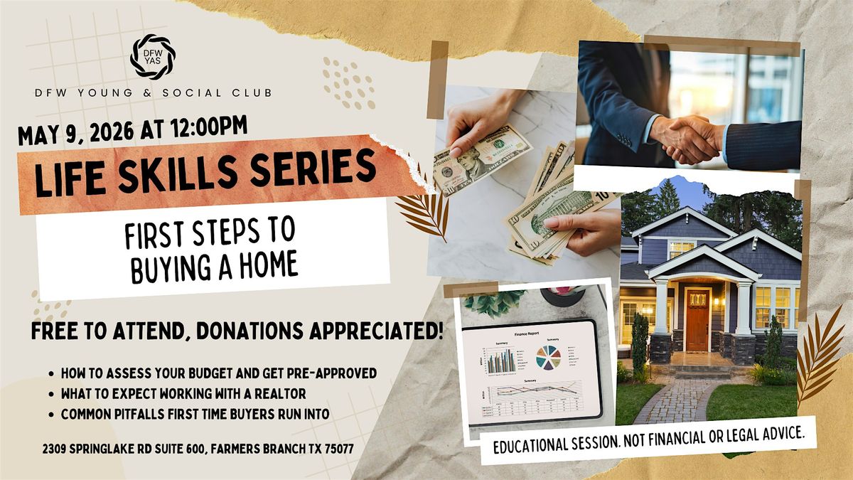 Led by long-time DFW Young & Social member and Realtor Rusty Ahmadi, this presentation style session breaks down the home buying process into clear, approachable steps. From understanding your budget to working with an agent to making an offer, you will leave with a clearer picture of what the process actually looks like. There will be plenty of time for questions. This is an educational session, not financial or legal advice.