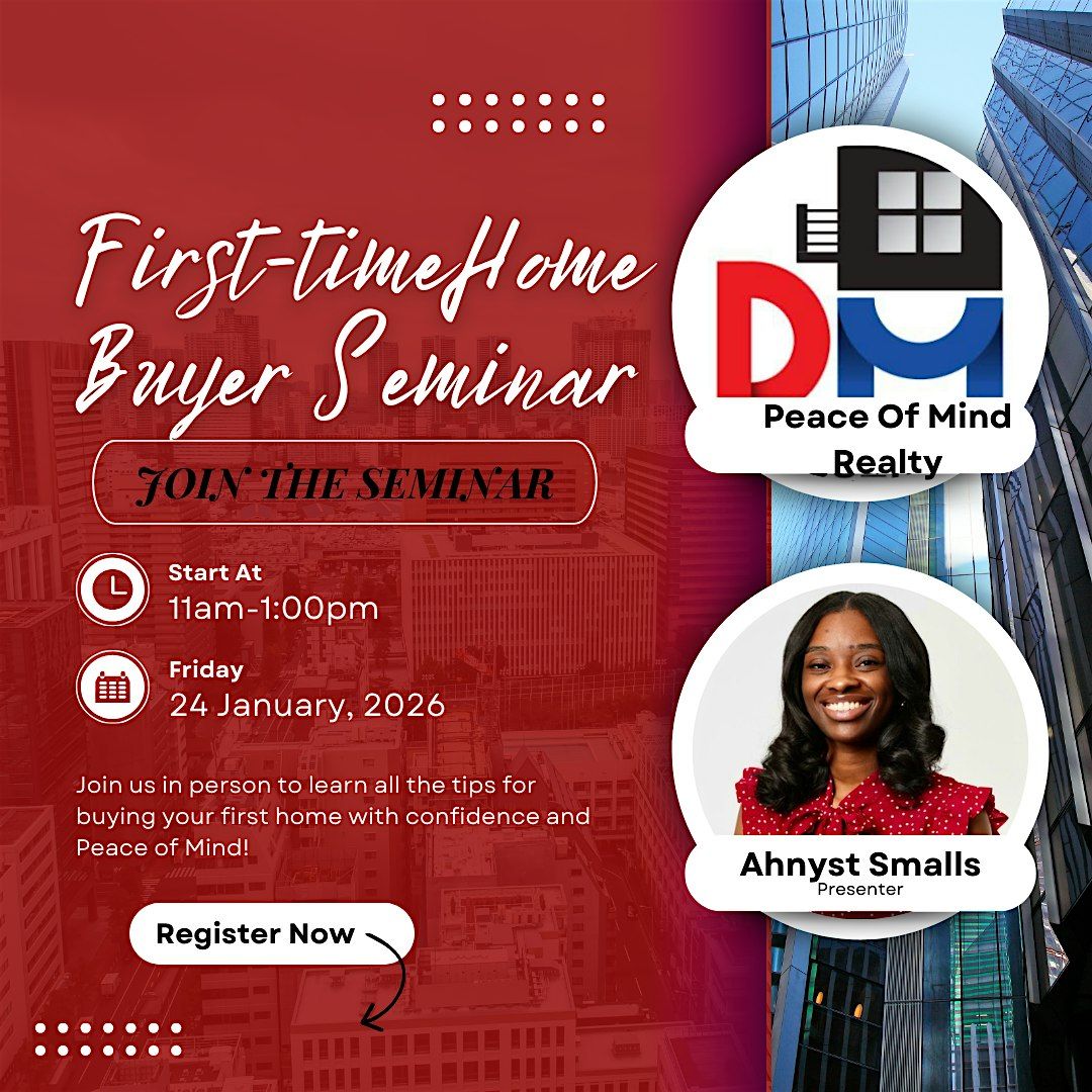 Peace of Mind Realty invites you to an in-person seminar with knowledgeable realtors, a mortgage professional, and more! Learn the basics, ask questions, and gain the confidence you need to buy your first home with Peace of Mind. Get comfy, grab a pen/notepad, and let’s make your homeownership dream a reality!