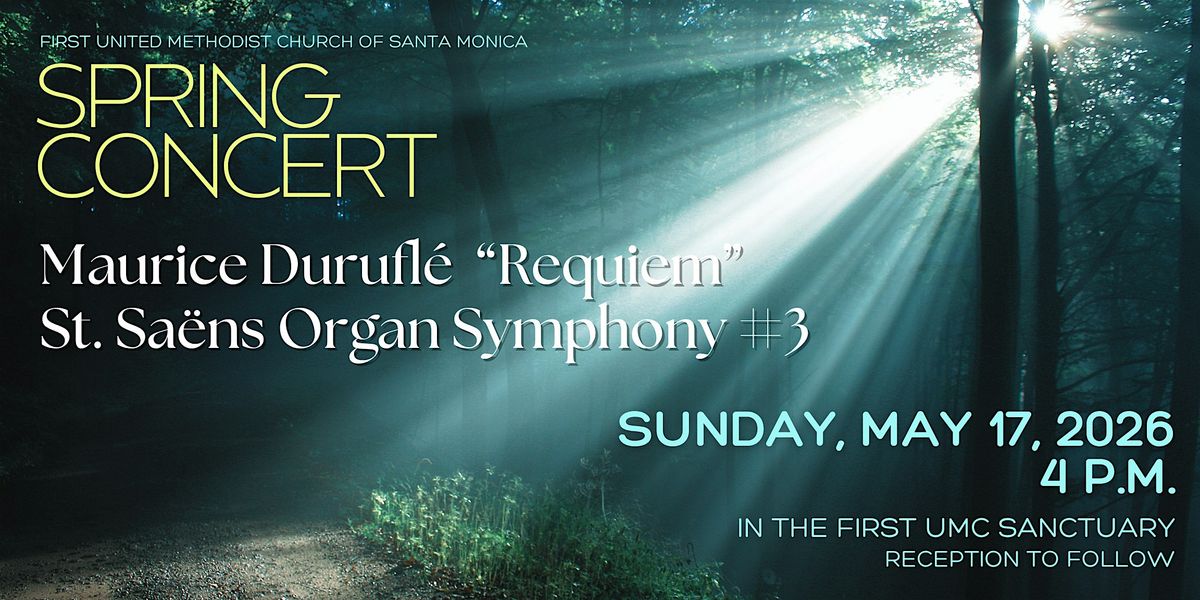 This year’s Spring Concert program features two major musical works of the 20th century: Requiem by Maurice Duruflé and Organ Symphony No. 3 by Camille Saint-Saëns. The combined musicians of a 60 voice chorus, pipe organ and the Los Angeles Concert Orchestra under the direction of Dr. James Smith will musically fill the church for a truly memorable experience.