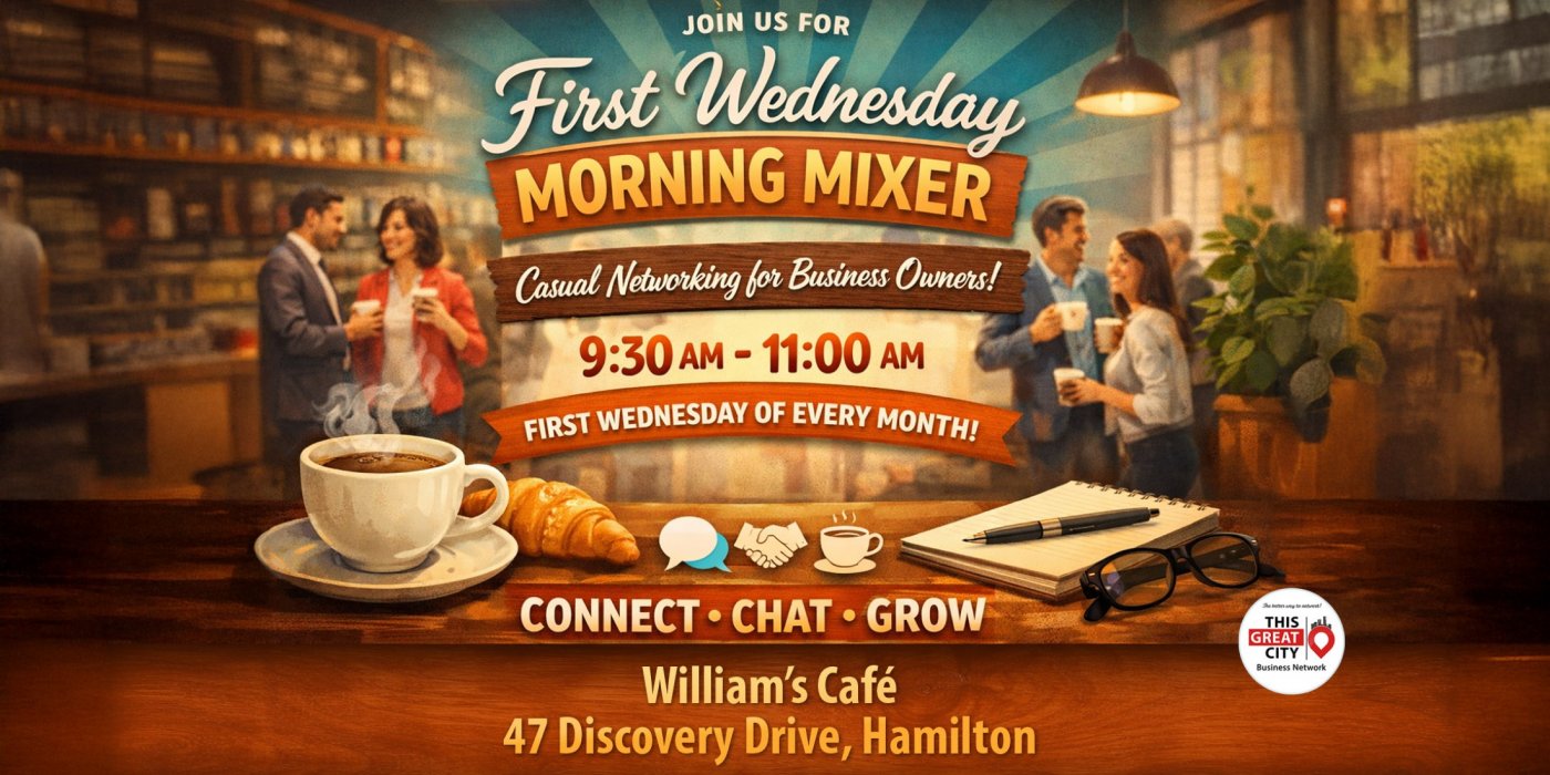 This isn't your typical stuffy networking event. We believe the best connections happen over a casual cup of coffee. Head over to Williams Café in Hamilton (on the upper level) to meet fellow small business owners and entrepreneurs in a fun, relaxed atmosphere.