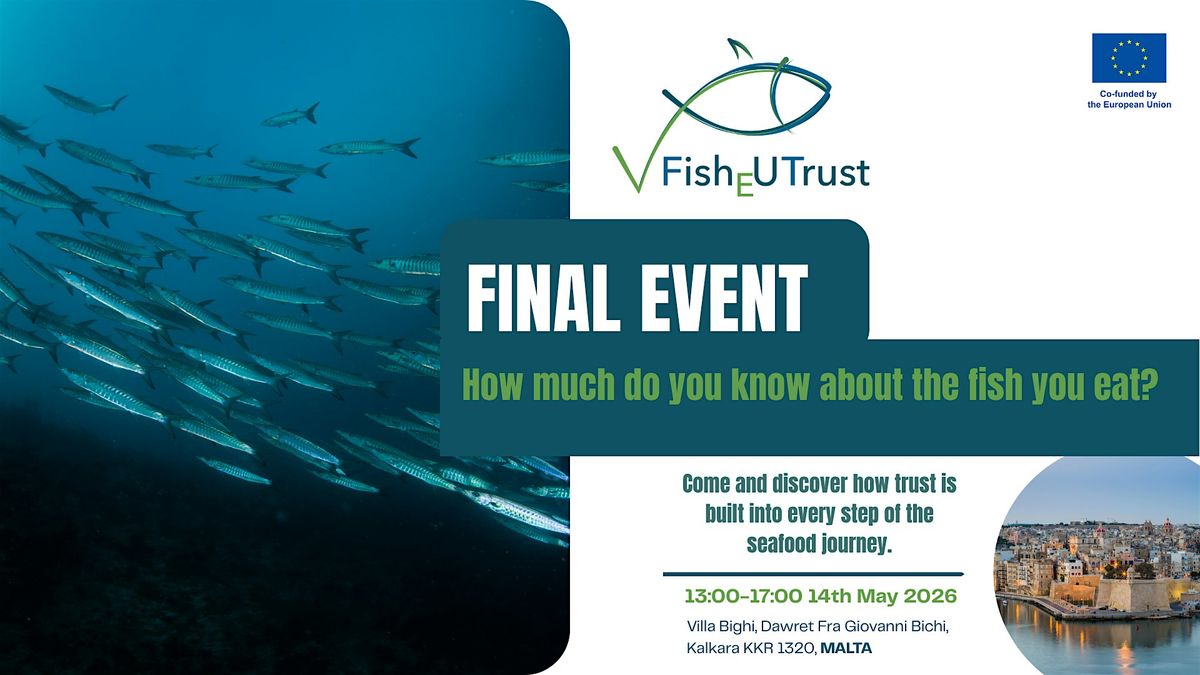 The FishEUTrust final event, set for May 14th in Malta at the stunning Villa Bighi, will showcase the project's innovative tools and solutions for sustainable seafood trust, uniting partners, EU stakeholders, industry leaders, and policymakers in the Mediterranean blue economy. Attendees will enjoy a welcome light lunch before experiencing live demonstrations of the digital traceability platform, VR tools, and biochemical sensors through interactive sessions, partner showcases, and a panel discussion highlighting key project achievements.