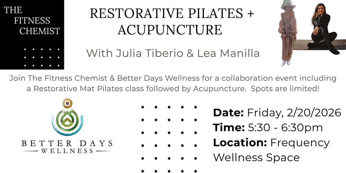 Julia Tiberio, The Fitness Chemist, is a certified Mat Pilates, Barre and Yoga instructor and will guide you through Restorative movements with modifications.
