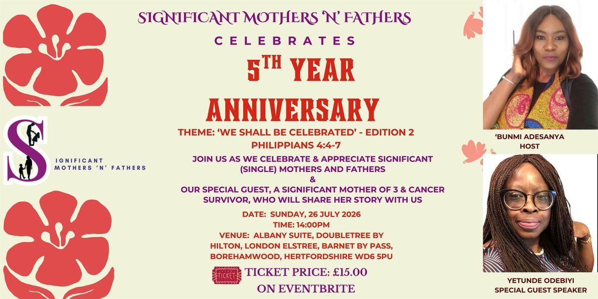 Come and celebrate 5 amazing years with us with an unforgettable in-person event celebrating & appreciating significant ('single') mothers & fathers for their hard work, strength & resilience.