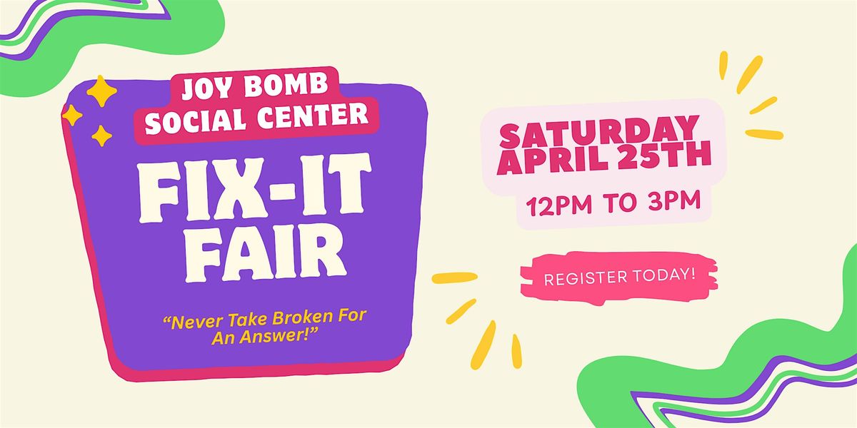 Join us for a Fix-It-Fair! Its a free event where people fix things together. We will have fixers on hand to repair your broken items!About this Event