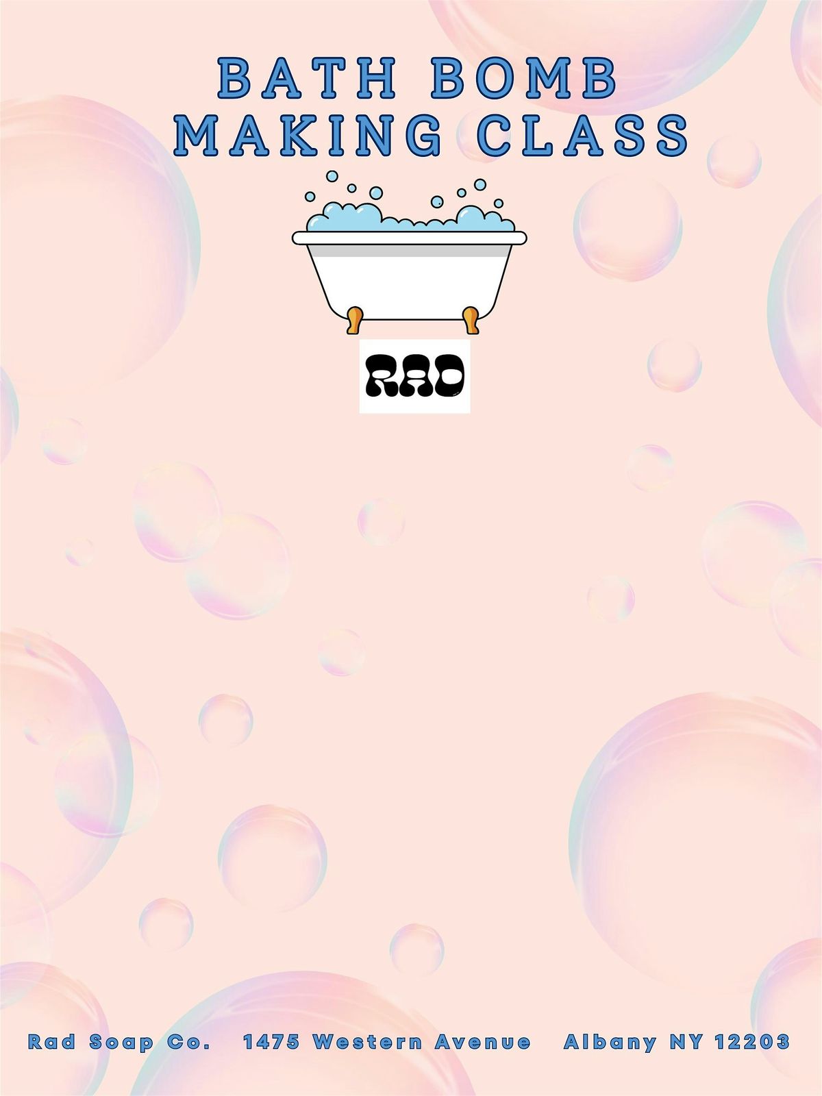 Welcome to the Bath Bomb Making Event happening at RAD Soap Co. on February 17 at 11:00 AM.