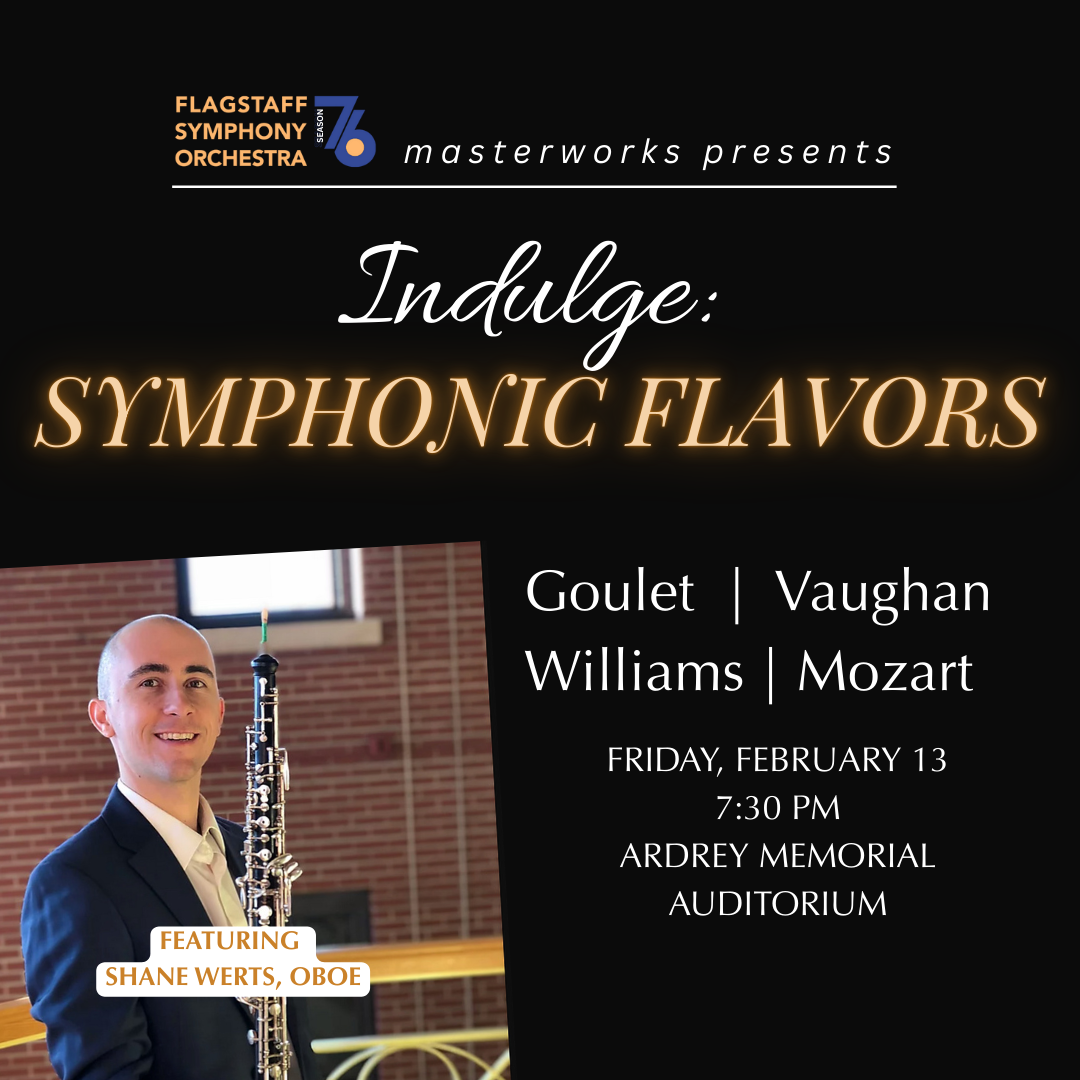 ✨ Enter a world of endless possibilities at Flagstaff Symphony Orchestra - Indulge: Symphonic Flavors at Ardrey Auditorium, where every moment tells a story! 🏛️ The stunning Ardrey Auditorium in vibrant Flagstaff, AZ transforms into a realm of wonder on February 13th, 2026 at 07:30 PM. 🌟 They have crafted an experience that goes beyond the ordinary, combining elements of surprise, delight, and pure entertainment. Every detail has been thoughtfully considered to ensure your journey with us is nothing short of extraordinary. 🎯 Join fellow adventure seekers and memory makers in this celebration of imagination and innovation. 🎊 Reserve your spot today and be part of something truly special!