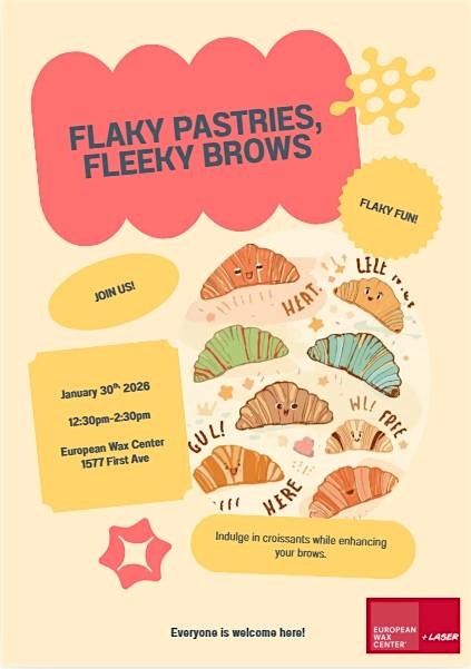 Hey there! Join us at 1577 1st Ave on January 30th, 2026 at 12:30 PM (Eastern Time) for a fun-filled event. Treat yourself to some delicious pastries while getting your brows on fleek on us! It's the perfect combo of sweet treats and beauty makeovers. Don't miss out on this awesome day out!