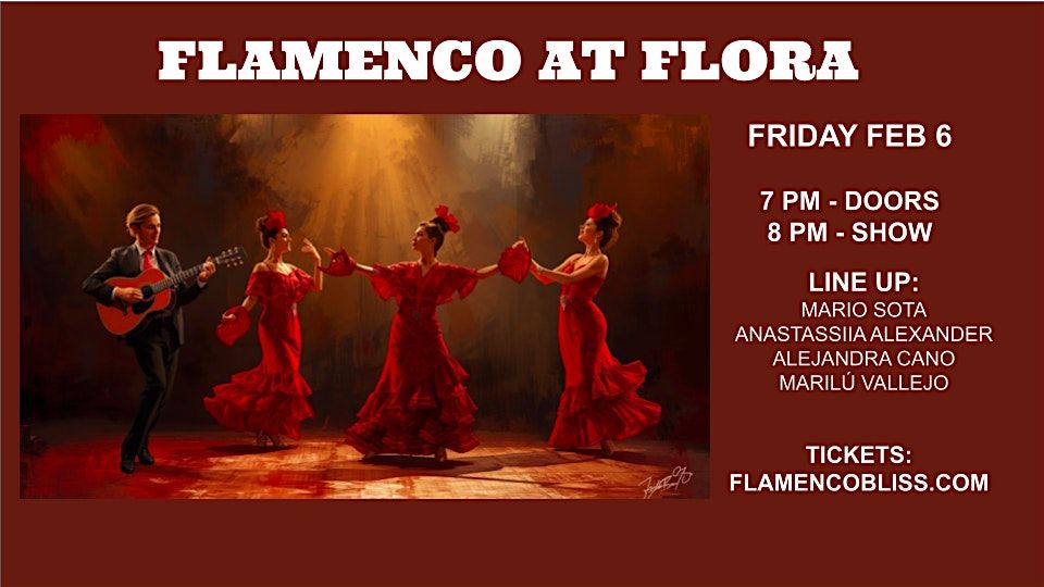 Get ready for an amazing night of flamenco vibes at the beautiful Flora venue! This is an in-person event where you can soak up the passion, rhythm, and fiery moves of authentic flamenco. Whether you’re a longtime fan or just curious, come join us for an unforgettable experience filled with music, dance, and good vibes. Don’t miss out on the chance to see flamenco live and up close!