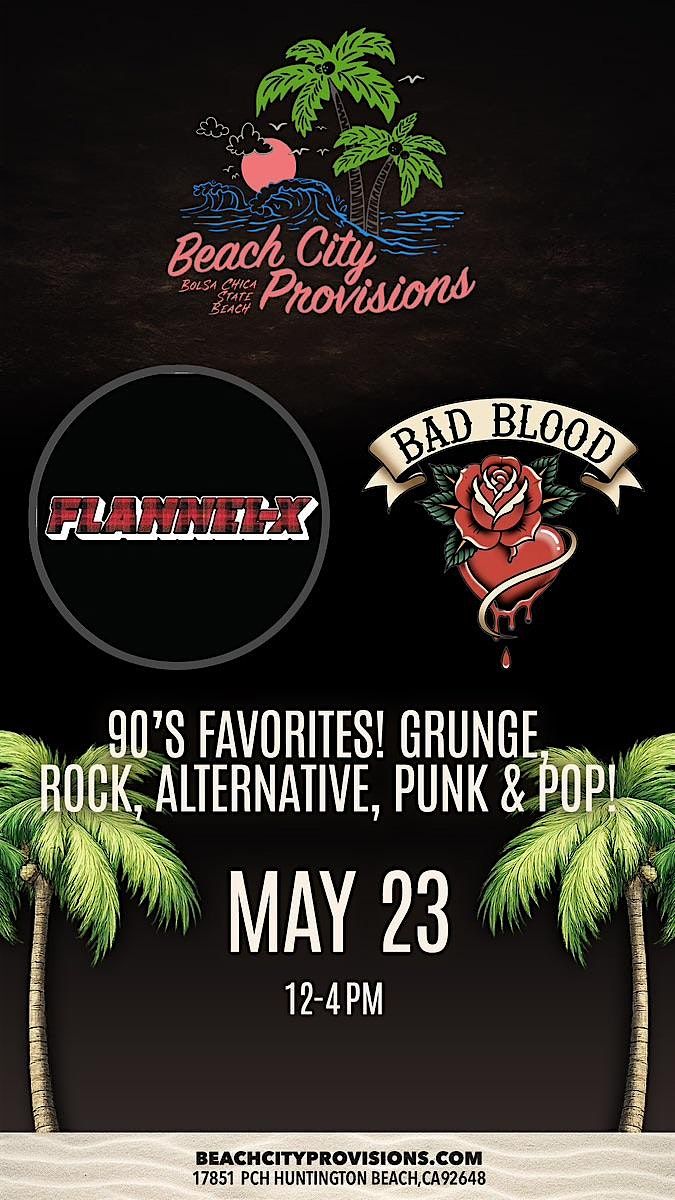 Come listen to Flannel-X and Bad Blood performing at the Beach at noon. All ages welcome and pet friendly.@beachcityprovisions