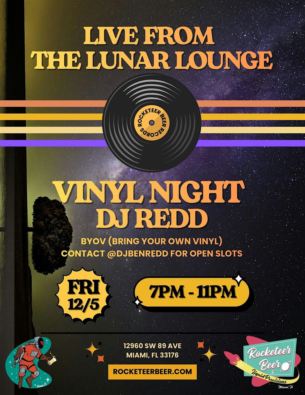 Join us Friday, 12/5 as DJ Redd brings the vibes Live from the Lunar Lounge.