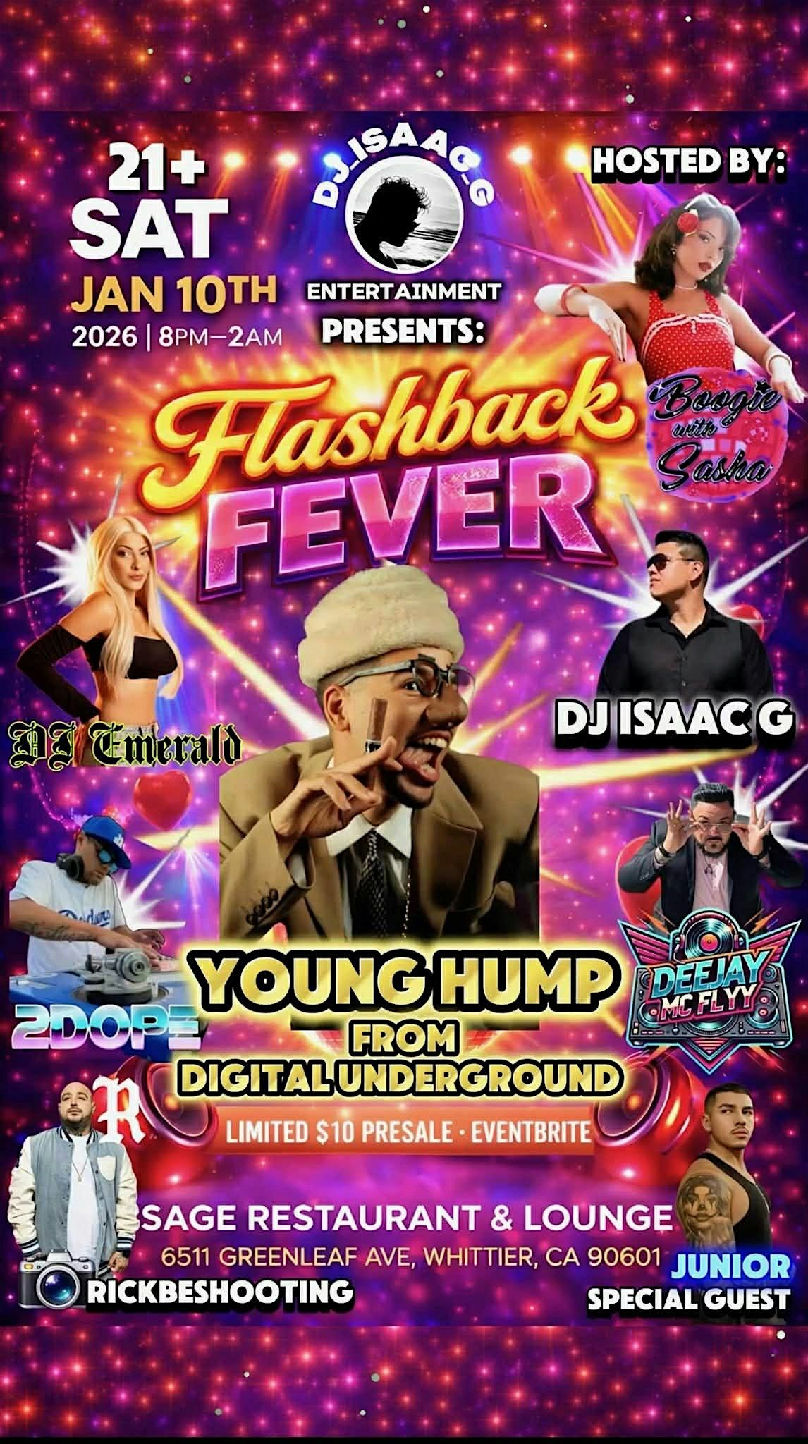 Headlining the night is Digital Underground’s very own Young Hump, bringing that legendary energy and timeless West Coast vibes