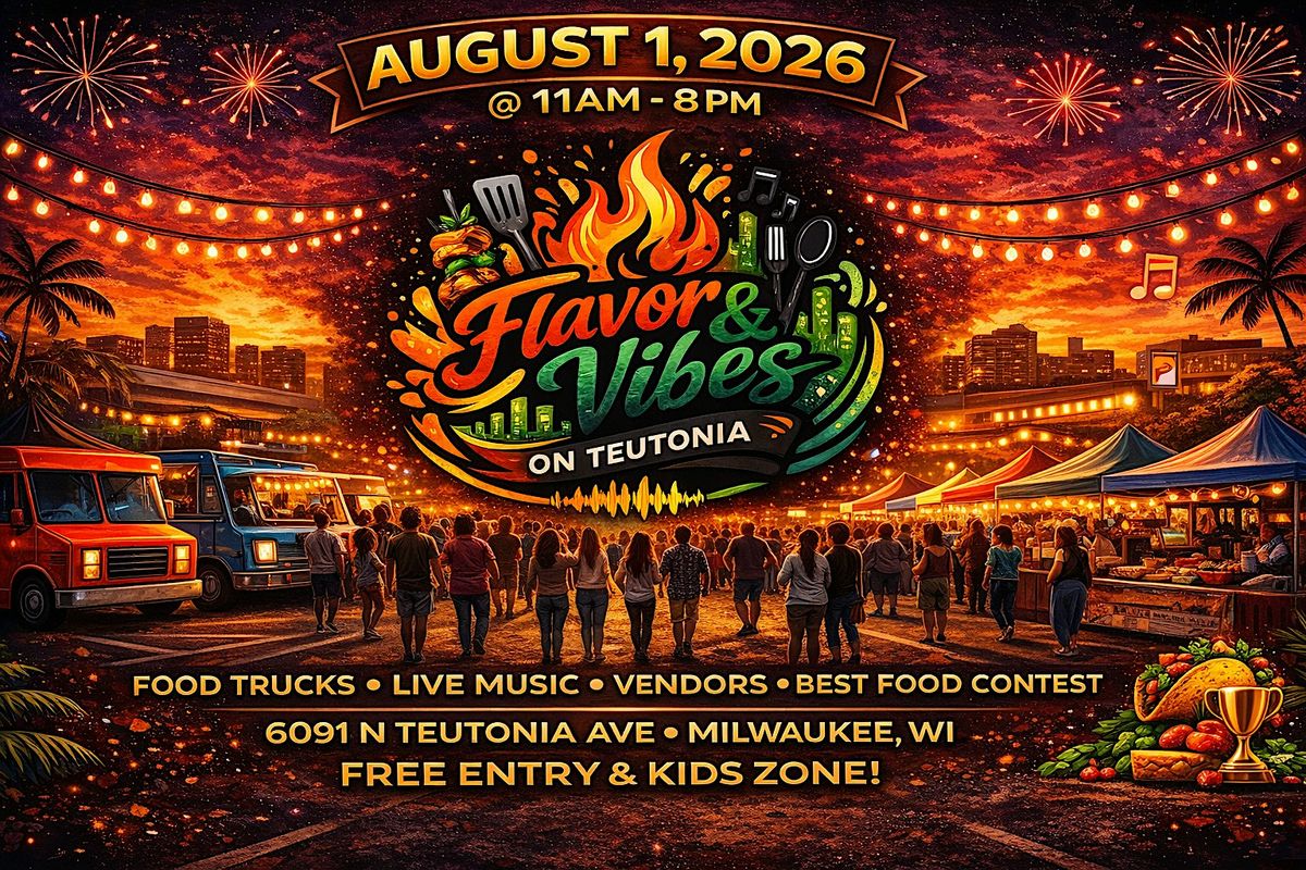 Get ready for Flavor & Vibes on TeutoniaโMilwaukeeโs ultimate summer festival! ๐ฅ Join us on August 1, 2026 from 11AMโ8PM at 6091 N Teutonia Ave for a day filled with amazing food trucks, live music, local vendors, and family-friendly fun. ๐ Taste your way through the city ๐ถ Enjoy live music & DJs ๐๏ธ Shop local vendors ๐ Experience the Battle of the Flavors and vote for your favorite food truck ๐ Kids Zone for the whole family FREE ENTRY โ All are welcome!
