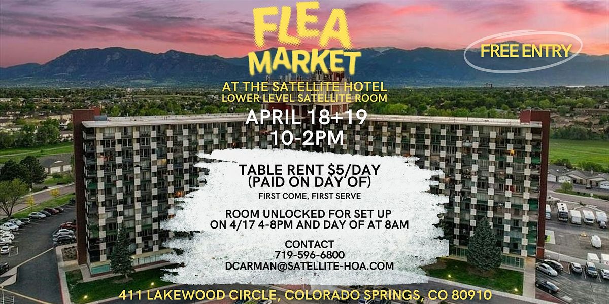 ️ Flea Market at the Satellite Hotel! April 18–19, 10–2. Free entry, unique finds, local vendors in the Lower Level Satellite Room.About this Event